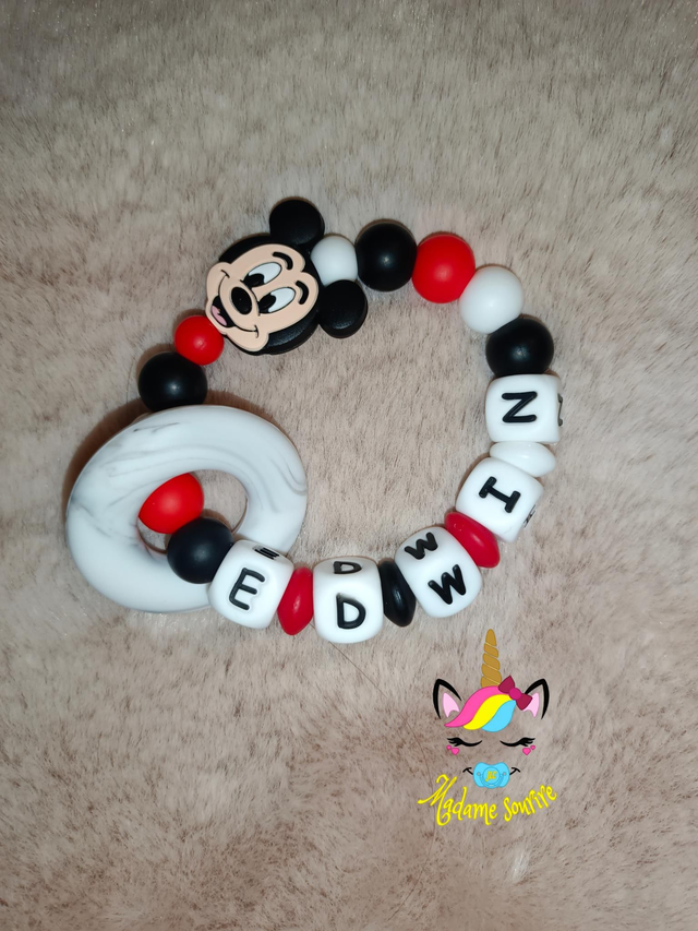 Respect des normes CE, composée de perles silicone alimentaire et/ou bois naturel.