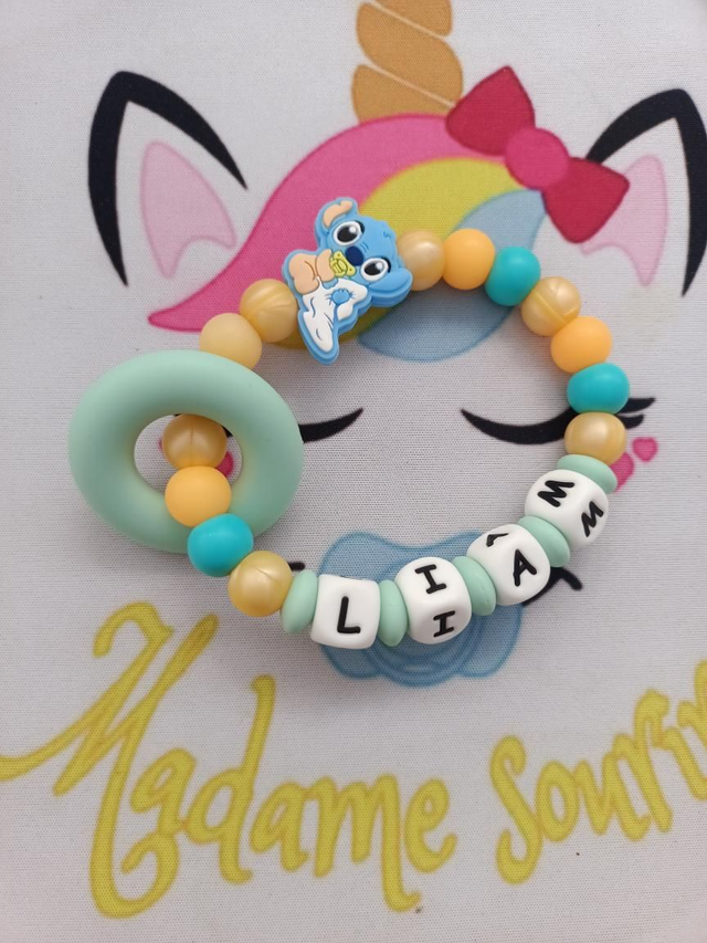 Respect des normes CE, composée de perles silicone alimentaire et/ou bois naturel.