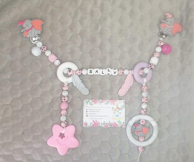 Une Arche d'éveil pour que bébé s'occupe tout en s'amusant et même soulager ses poussées dentaires en le mâchouillant. Choisissez le nombre de modules, si vous désirez des grelots également à la base des deux clips qui servent à fixer l'arche.