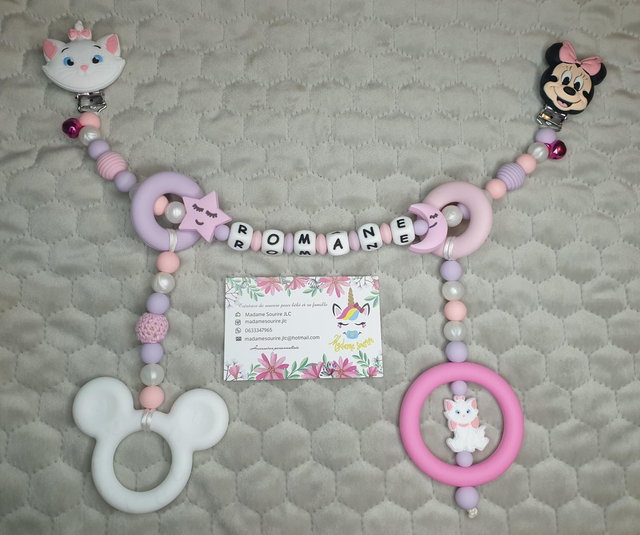 Respect des normes CE, composée de perles silicone alimentaire et/ou bois naturel.
