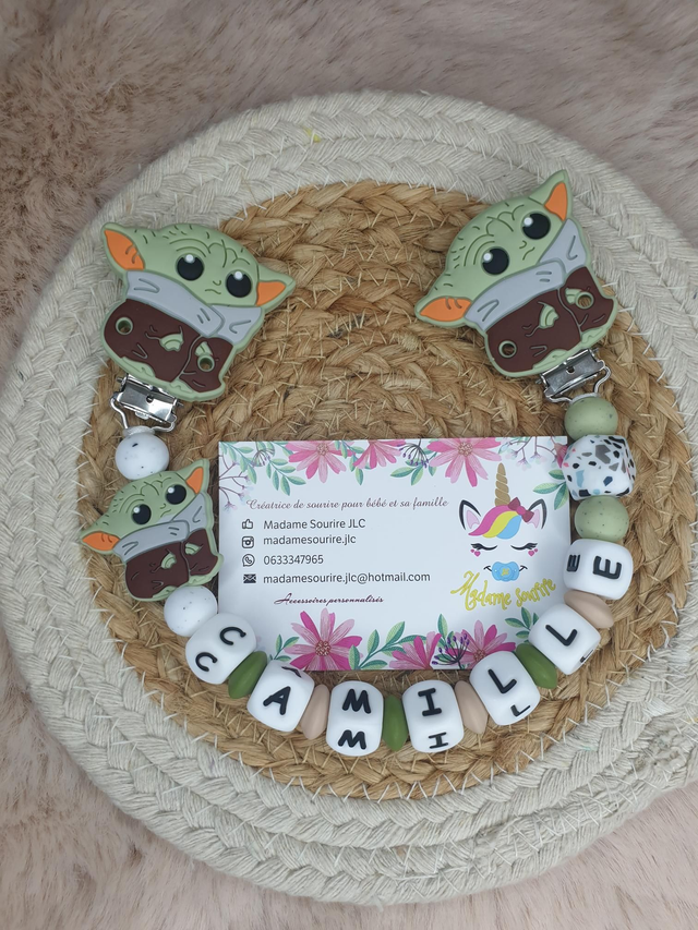 Respect des normes CE, composée de perles silicone alimentaire et/ou bois naturel.