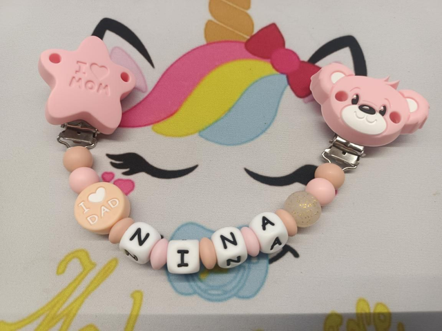 Respect des normes CE, composée de perles silicone alimentaire et/ou bois naturel.