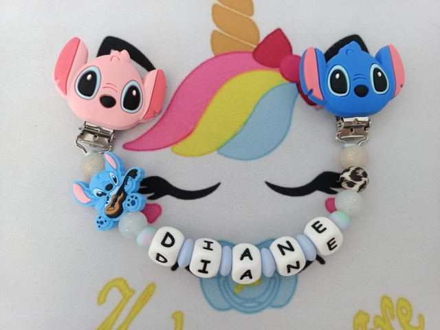 Une Attache doudou pour ne plus perdre le doudou avec deux clips pour accrocher aux tissus sans les abîmer, un pour le vêtement, l'autre au doudou.