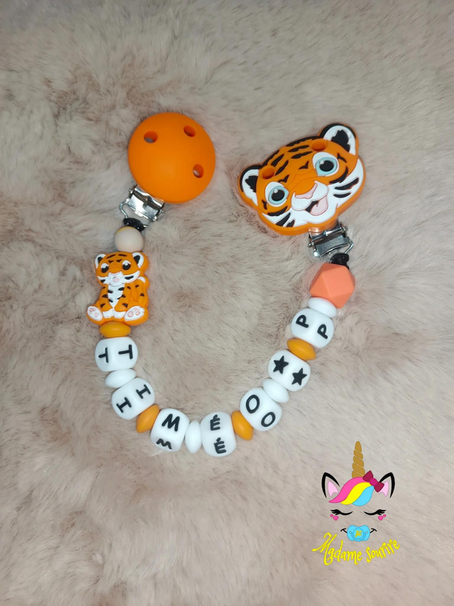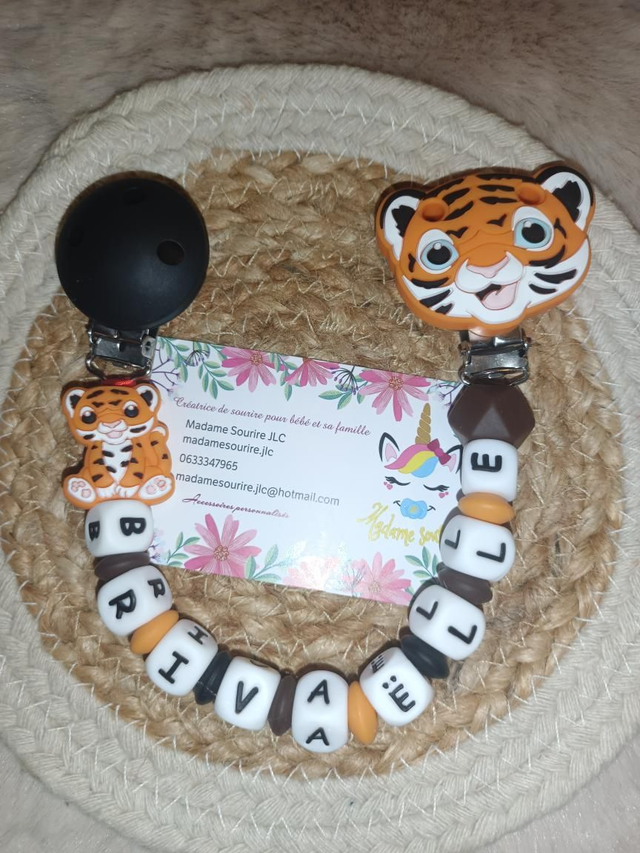 Respect des normes CE, composée de perles silicone alimentaire et/ou bois naturel.