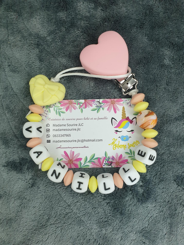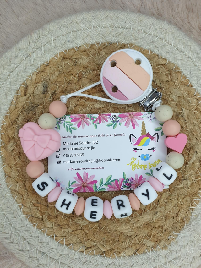 Attache Tétine Coeur Noeud