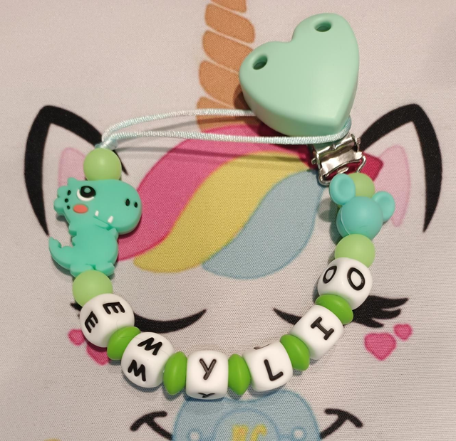 Respect des normes CE, composée de perles silicone alimentaire et/ou bois naturel.