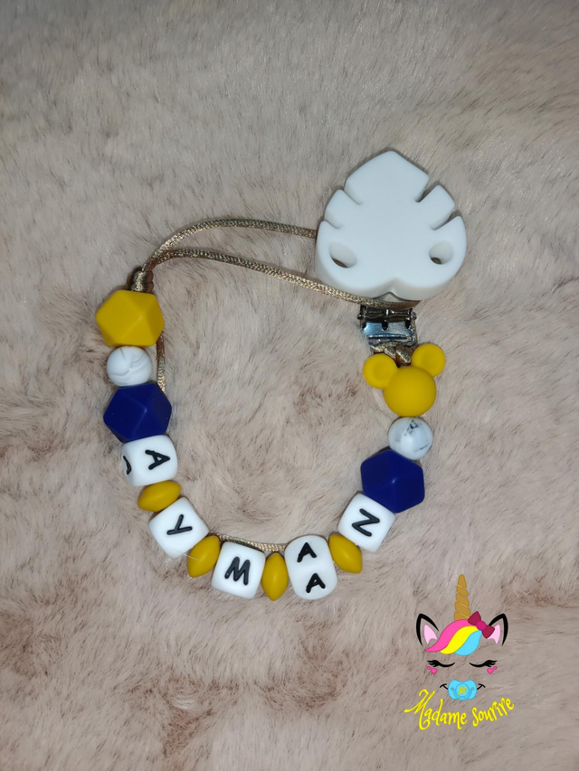 Respect des normes CE, composée de perles silicone alimentaire et/ou bois naturel.