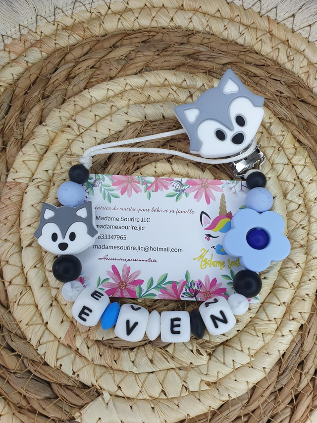 Respect des normes CE, composée de perles silicone alimentaire et/ou bois naturel.