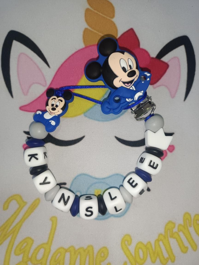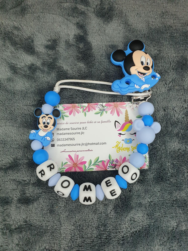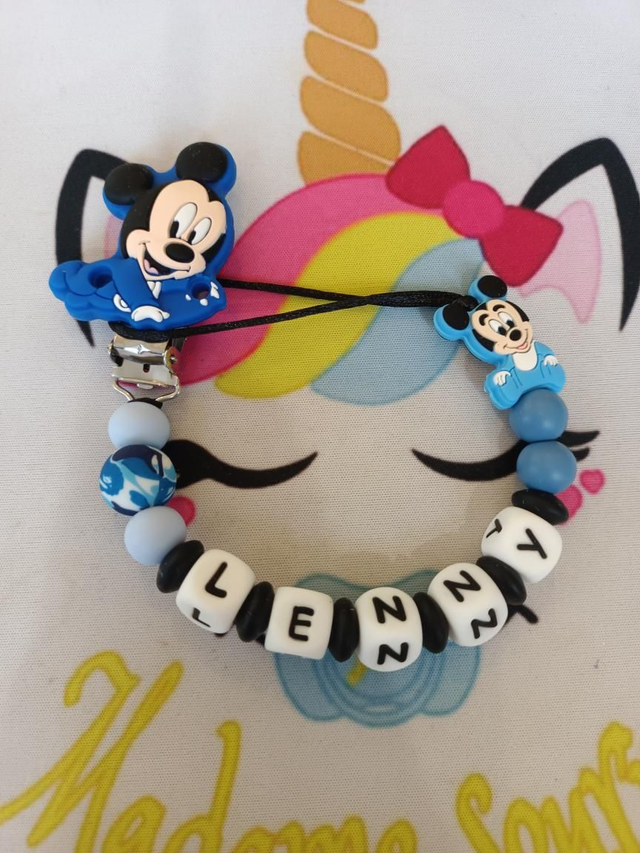 Une Attache tétine pour ne plus perdre la tétine avec une boucle pour attacher celle-ci (adaptateur MAM disponible pour les tétines MAM dans les accessoires) et un clip pour accrocher l'attache à un tissu sans l'abîmer.