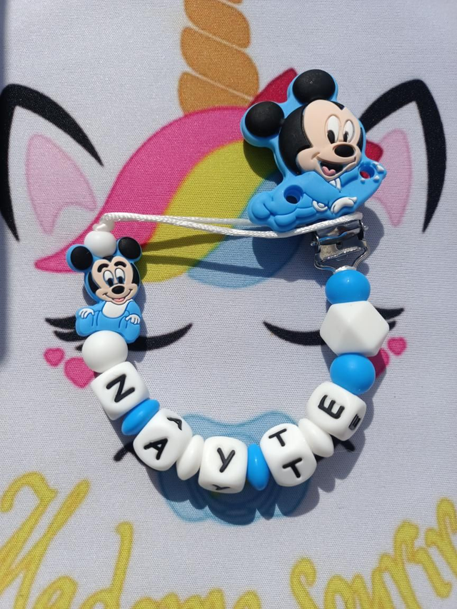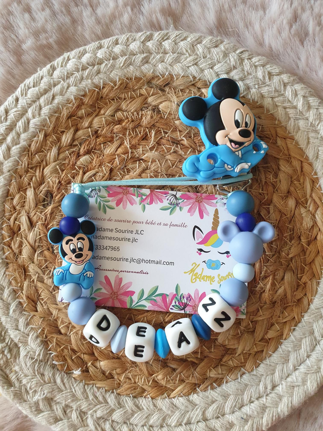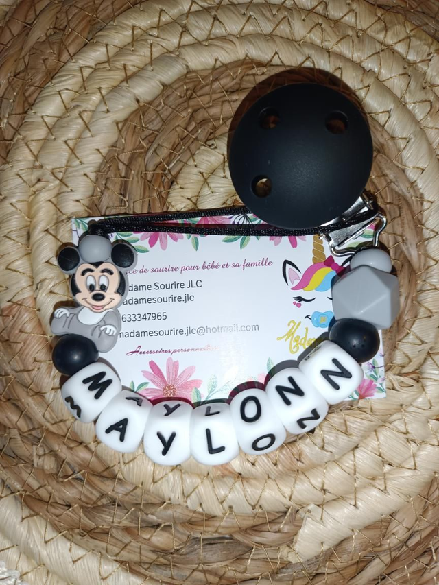 Respect des normes CE, composée de perles silicone alimentaire et/ou bois naturel.