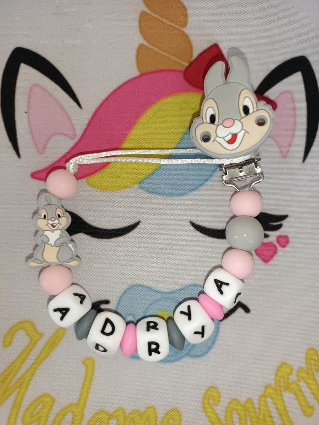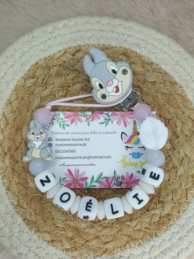 Une Attache tétine pour ne plus perdre la tétine avec une boucle pour attacher celle-ci (adaptateur MAM disponible pour les tétines MAM dans les accessoires) et un clip pour accrocher l'attache à un tissu sans l'abîmer.