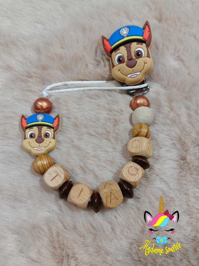 Respect des normes CE, composée de perles silicone alimentaire et/ou bois naturel.