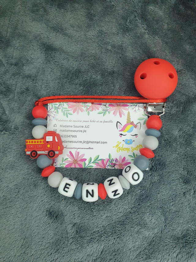 Une Attache tétine pour ne plus perdre la tétine avec une boucle pour attacher celle-ci (adaptateur MAM disponible pour les tétines MAM dans les accessoires) et un clip pour accrocher l'attache à un tissu sans l'abîmer.