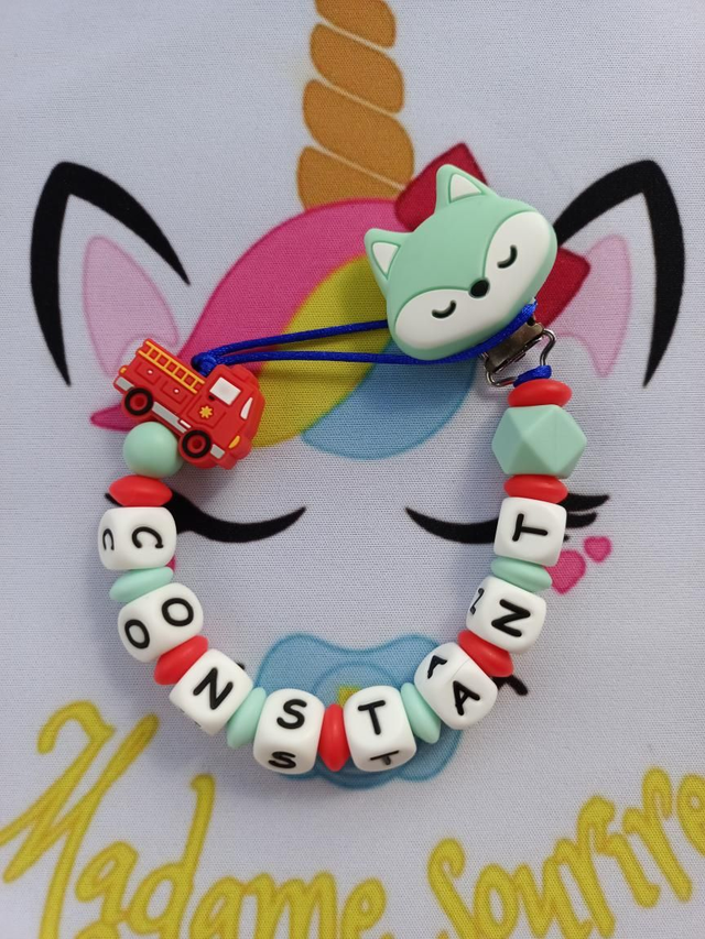 Respect des normes CE, composée de perles silicone alimentaire et/ou bois naturel.