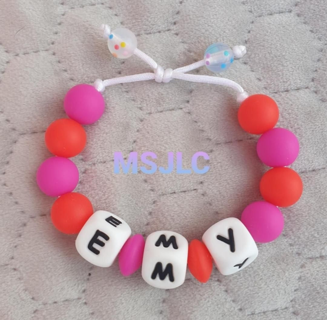 Un Bracelet réglable 2en1, bijou et anneau dentition. Donner votre joli bracelet à votre bébé pour soulager ses poussées dentaires.