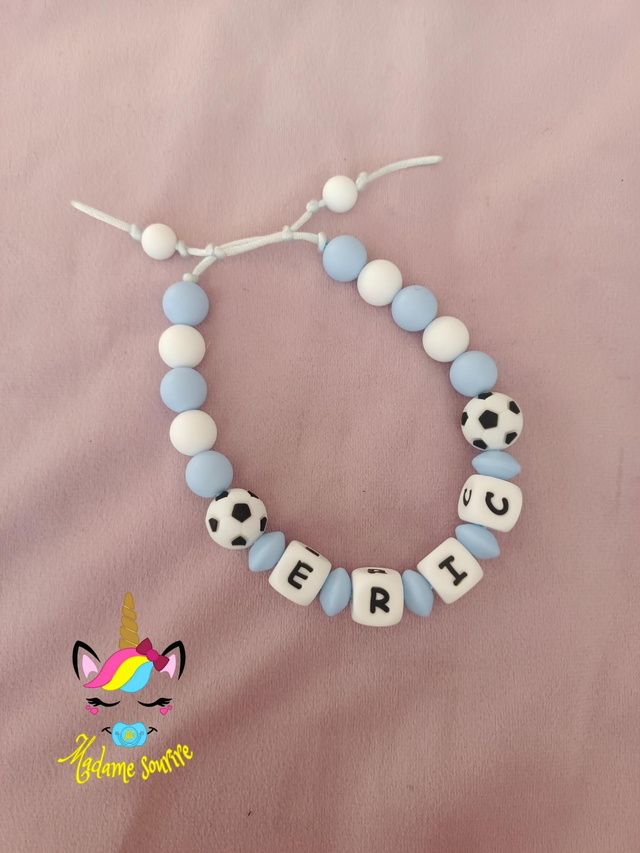 Respect des normes CE, composée de perles silicone alimentaire et/ou bois naturel.