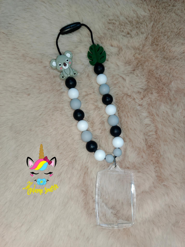 Respect des normes CE, composée de perles silicone alimentaire et/ou bois naturel.
