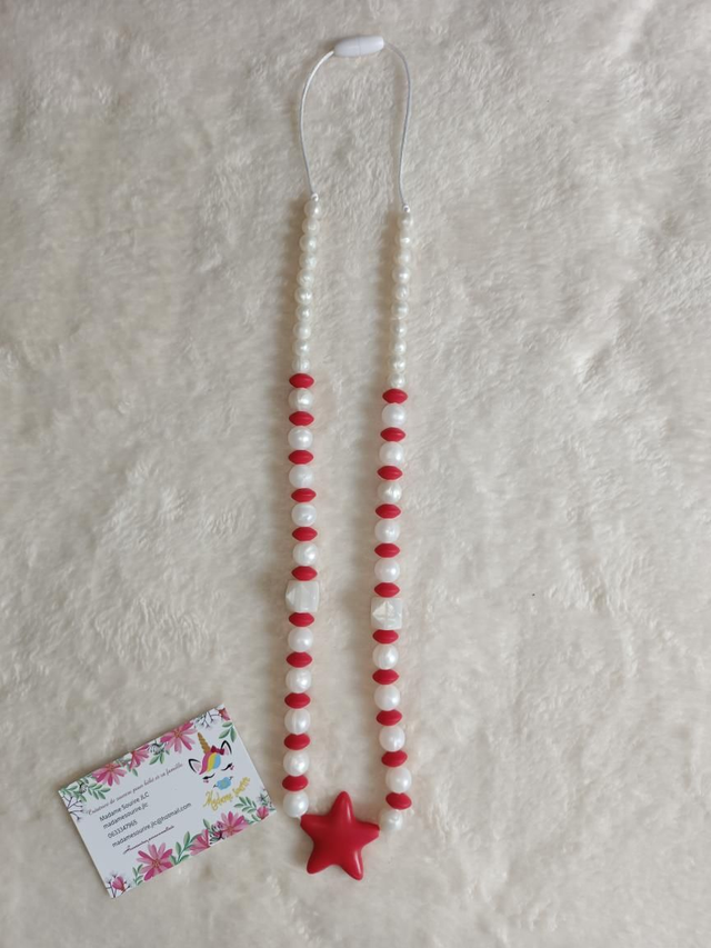 Un joli collier 2en1, facilite la prise au sein pour l'allaitement en apaisant bébé au touché du collier, la prise du biberon également. Occupe bébé quand il est dans vos bras et évite qu'il s'amuse avec vos bijoux. Sert également pour la dentition.