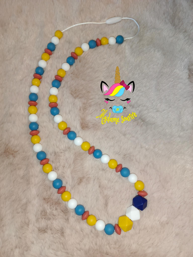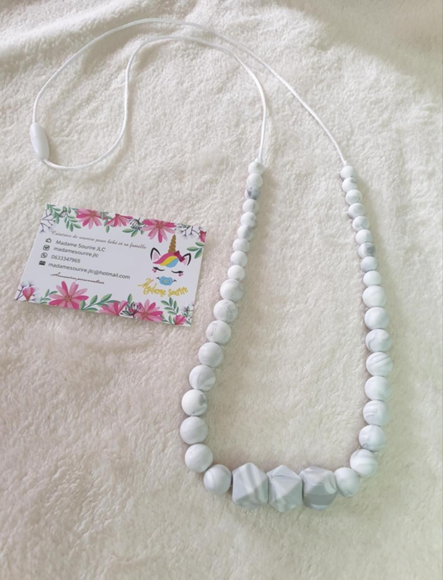 Un joli collier 2en1, facilite la prise au sein pour l'allaitement en apaisant bébé au touché du collier, la prise du biberon également. Occupe bébé quand il est dans vos bras et évite qu'il s'amuse avec vos bijoux. Sert également pour la dentition.