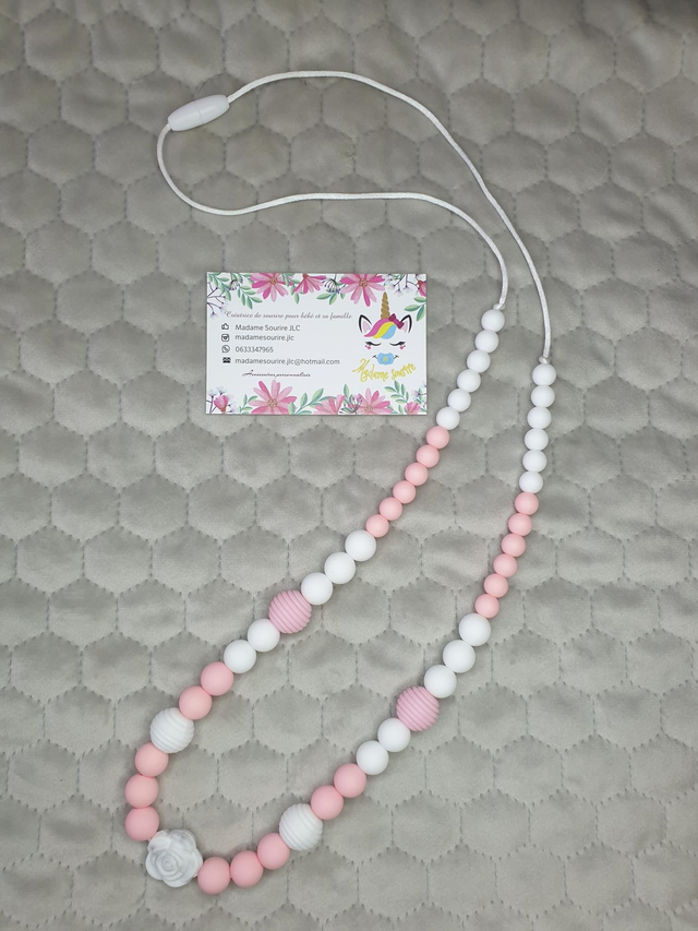 Un joli collier 2en1, facilite la prise au sein pour l'allaitement en apaisant bébé au touché du collier, la prise du biberon également. Occupe bébé quand il est dans vos bras et évite qu'il s'amuse avec vos bijoux. Sert également pour la dentition.