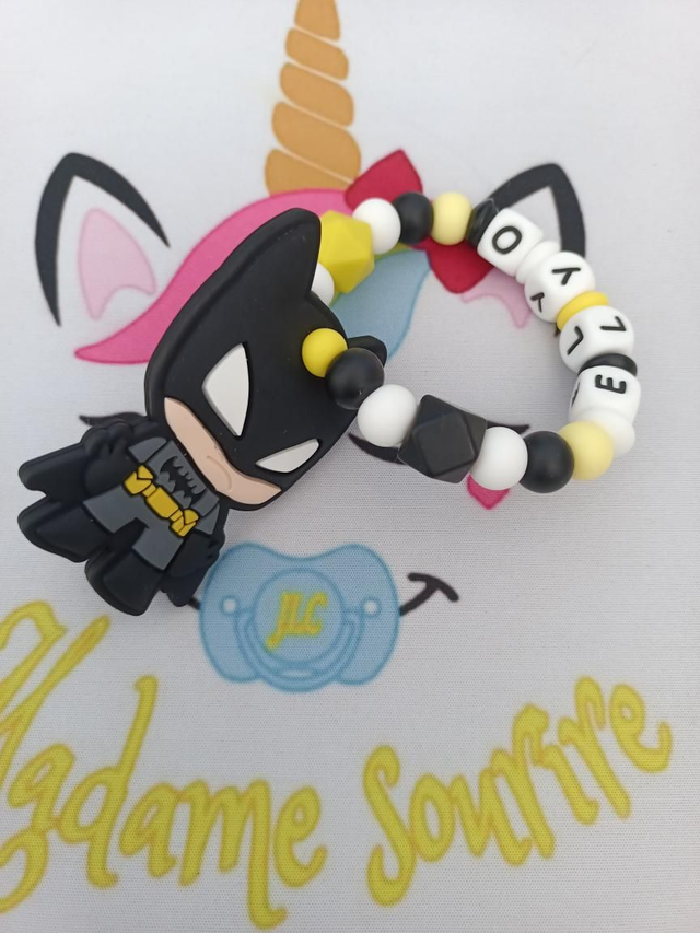 Respect des normes CE, composée de perles silicone alimentaire et/ou bois naturel.