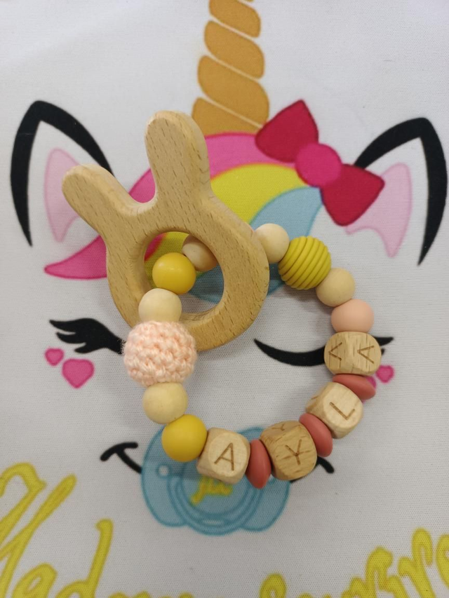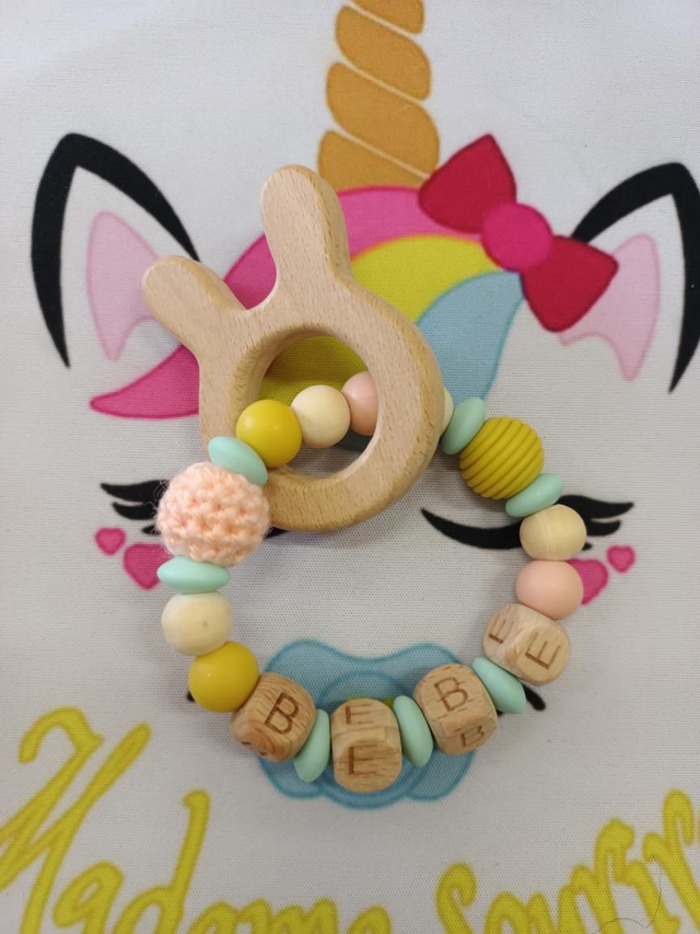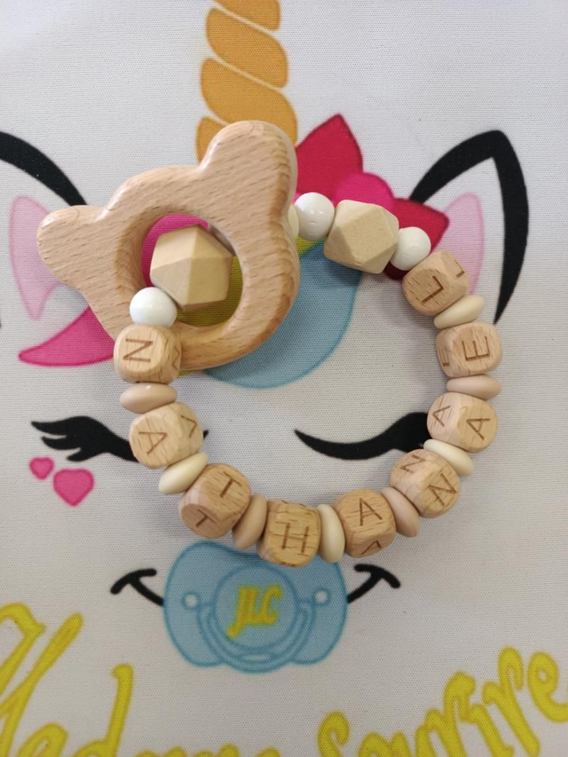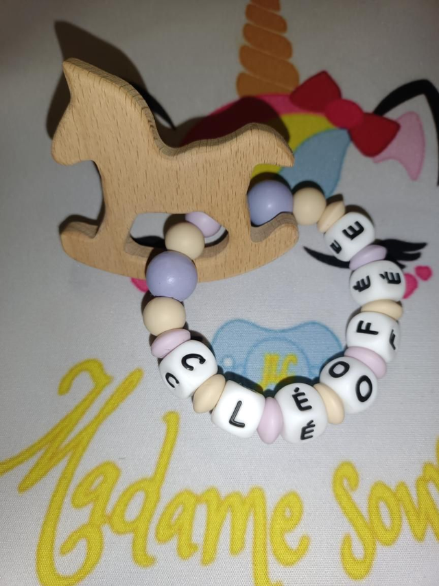 Respect des normes CE, composée de perles silicone alimentaire et/ou bois naturel.