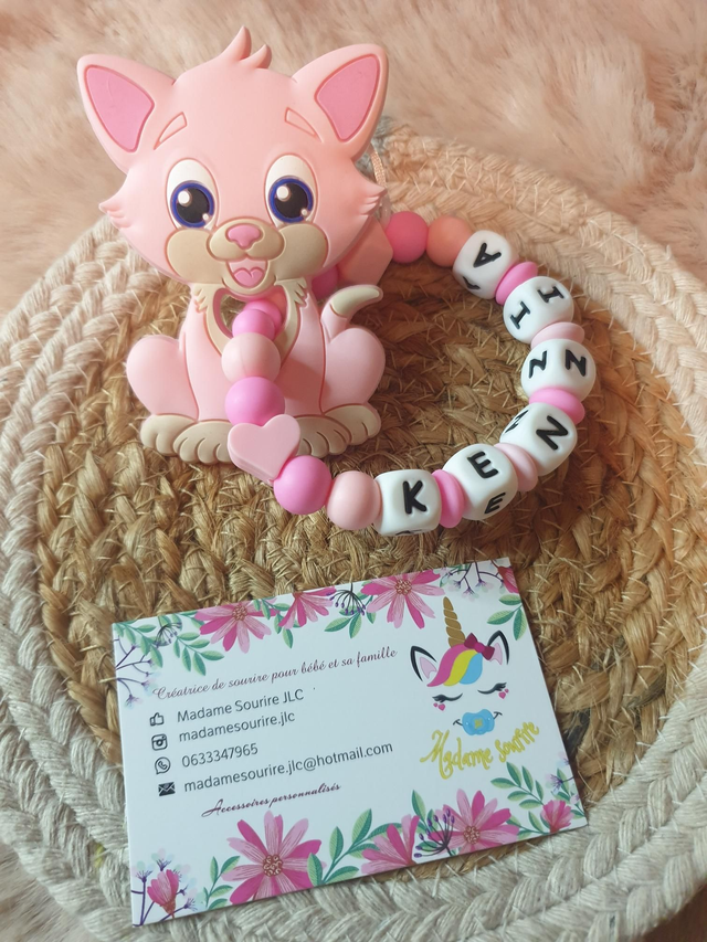 Respect des normes CE, composée de perles silicone alimentaire et/ou bois naturel.