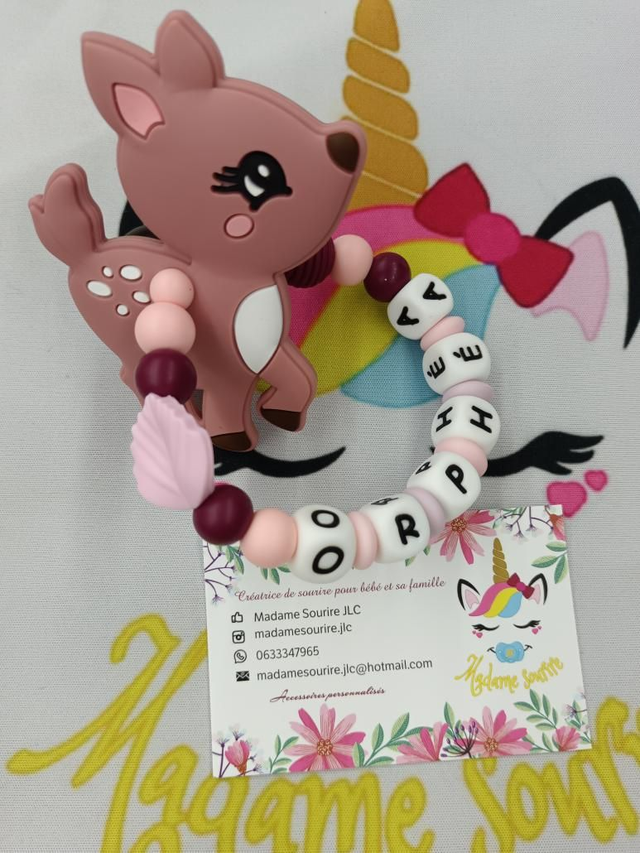 Respect des normes CE, composée de perles silicone alimentaire et/ou bois naturel.