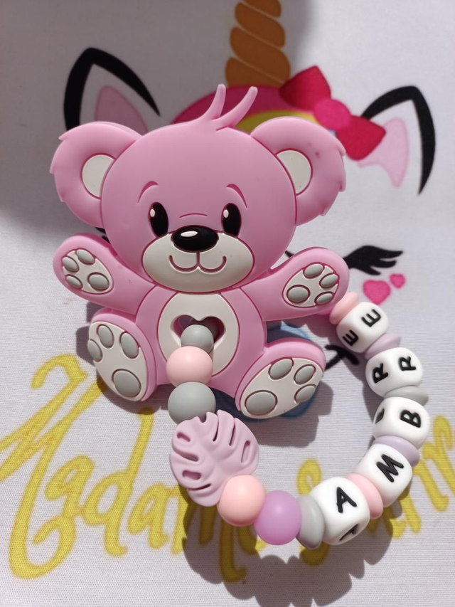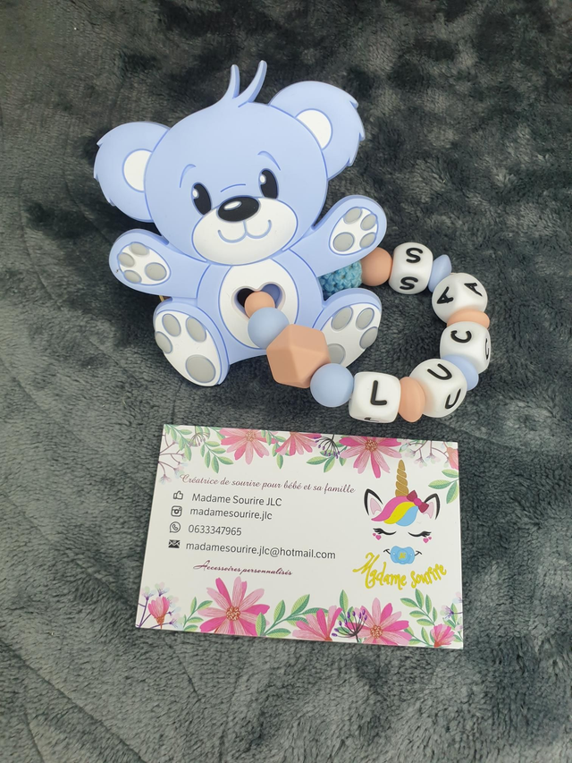 Respect des normes CE, composée de perles silicone alimentaire et/ou bois naturel.
