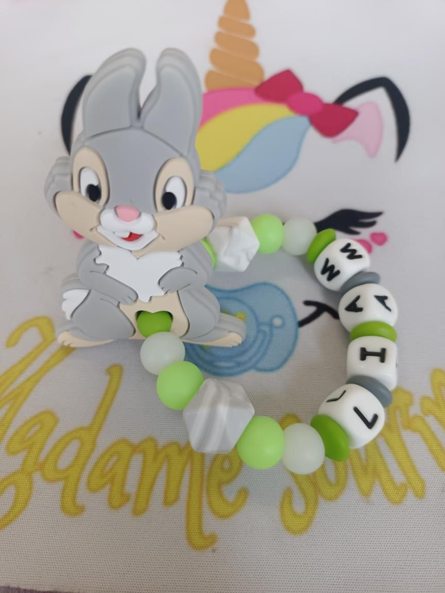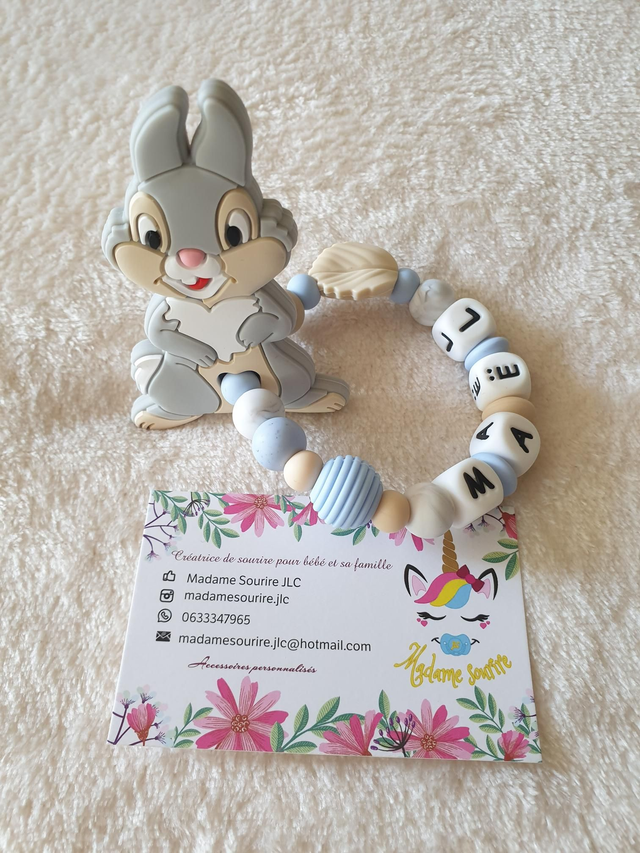 Respect des normes CE, composée de perles silicone alimentaire et/ou bois naturel.