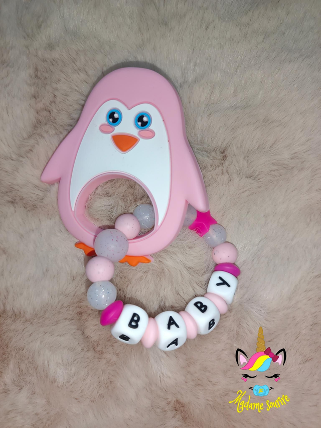 Un hochet de dentition pour soulager bébé durant ses poussées dentaires, sert à être mâchouillé en toute sécurité.