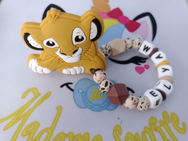 Respect des normes CE, composée de perles silicone alimentaire et/ou bois naturel.