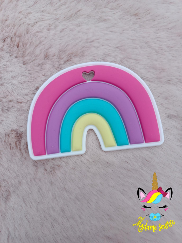 Un jouet de dentition pour soulager les poussées dentaires de bébé, peut être donner seul ou attacher à une attache tétine à la place de celle-ci.