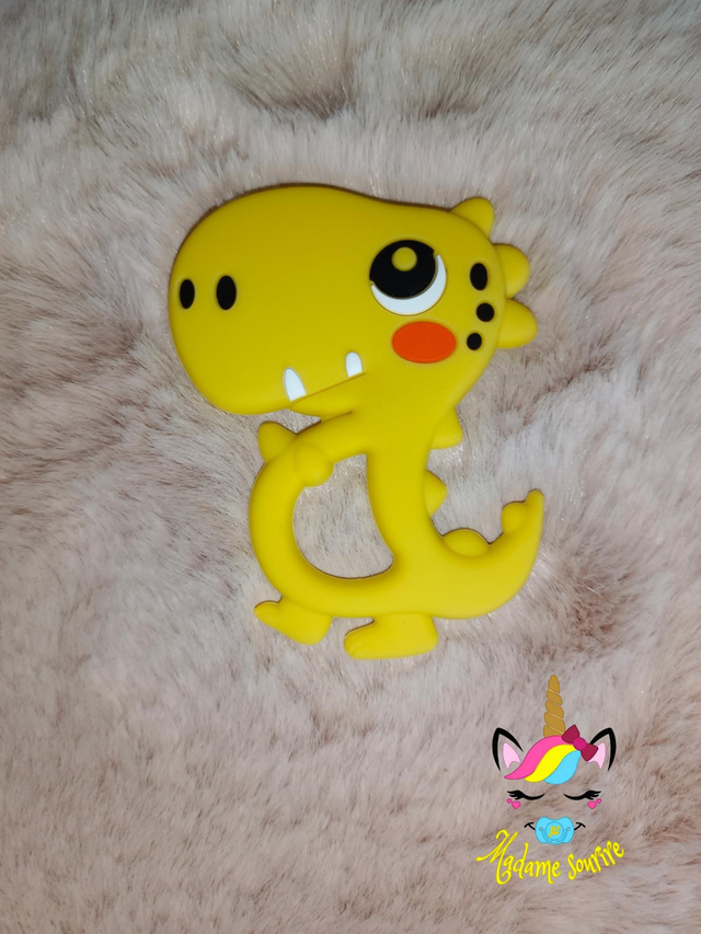 Un jouet de dentition pour soulager les poussées dentaires de bébé, peut être donner seul ou attacher à une attache tétine à la place de celle-ci.
