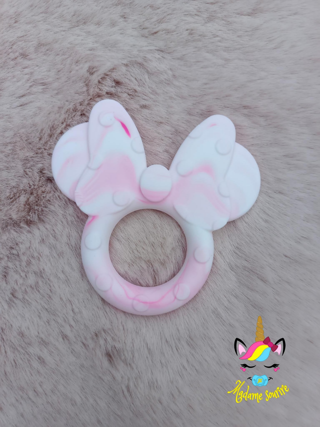 Un jouet de dentition pour soulager les poussées dentaires de bébé, peut être donner seul ou attacher à une attache tétine à la place de celle-ci.