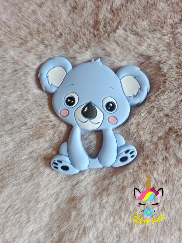 Un jouet de dentition pour soulager les poussées dentaires de bébé, peut être donner seul ou attacher à une attache tétine à la place de celle-ci.