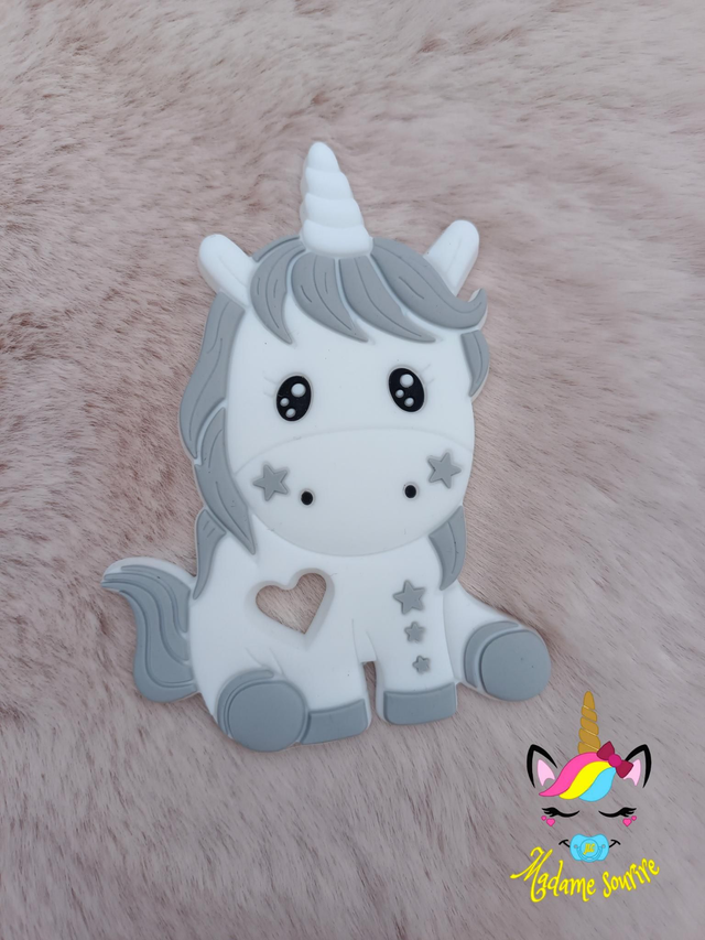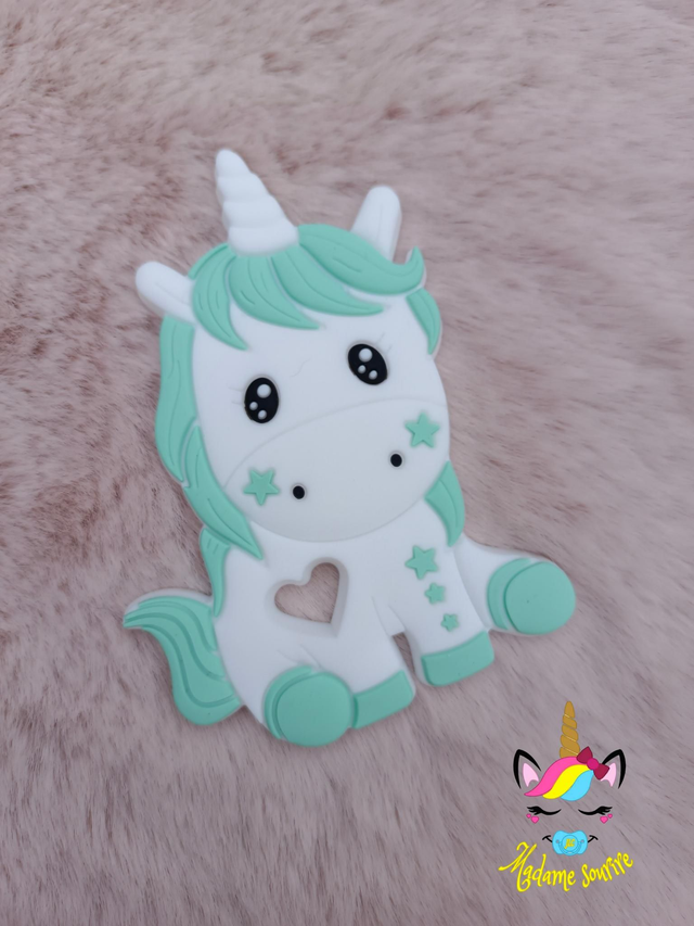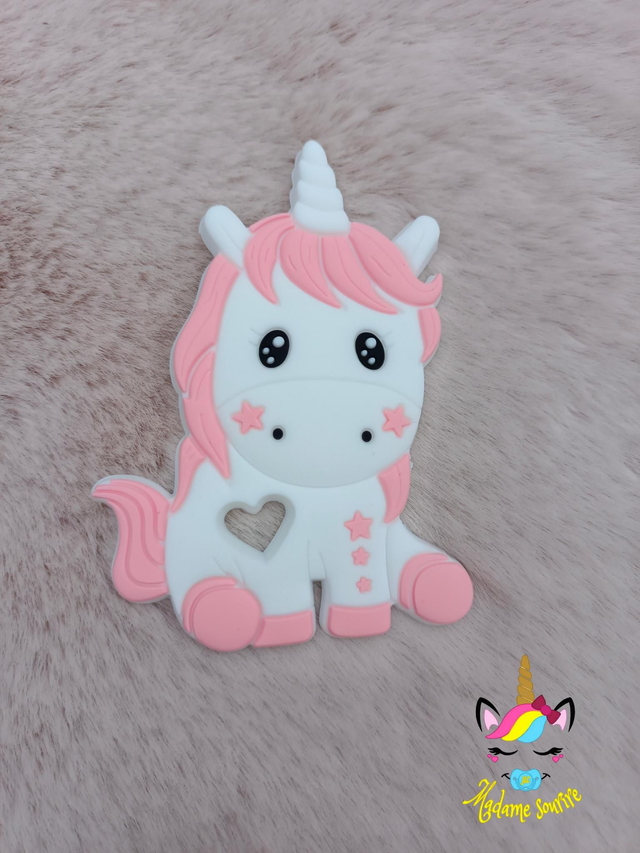 Un jouet de dentition pour soulager les poussées dentaires de bébé, peut être donner seul ou attacher à une attache tétine à la place de celle-ci.