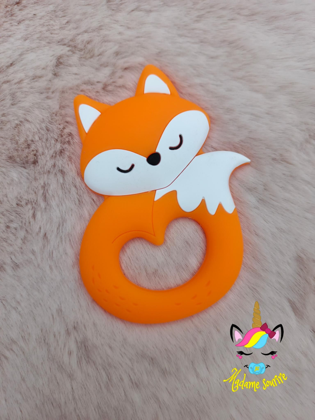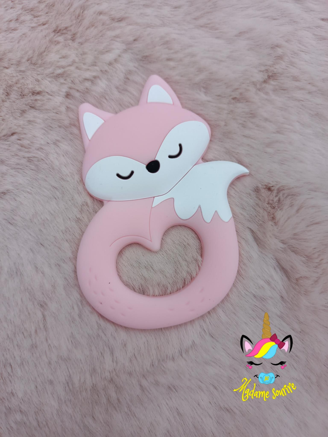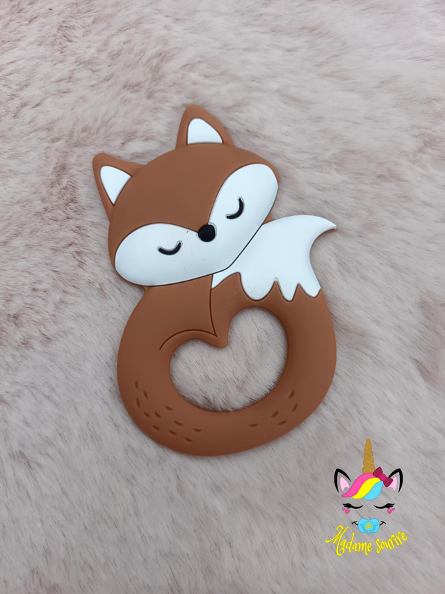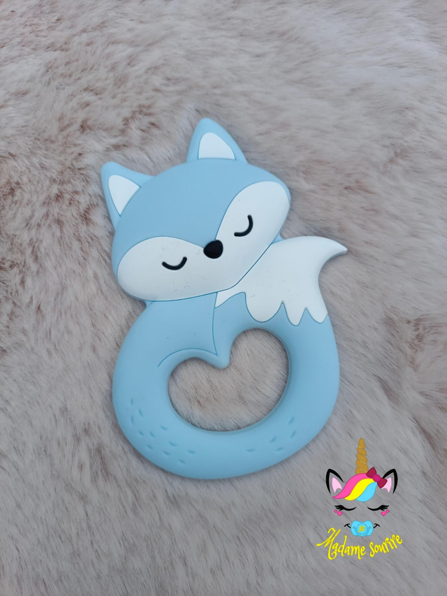 Un jouet de dentition pour soulager les poussées dentaires de bébé, peut être donner seul ou attacher à une attache tétine à la place de celle-ci.