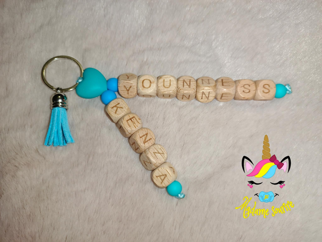Un porte clés pour accrocher vos clefs en toute sécurité, composé de perles en silicone alimentaire et/ou bois naturel.