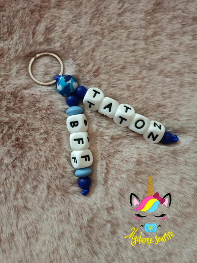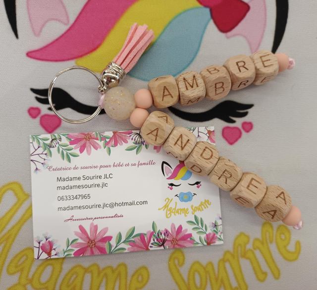 Un porte clés pour accrocher vos clefs en toute sécurité, composé de perles en silicone alimentaire et/ou bois naturel.