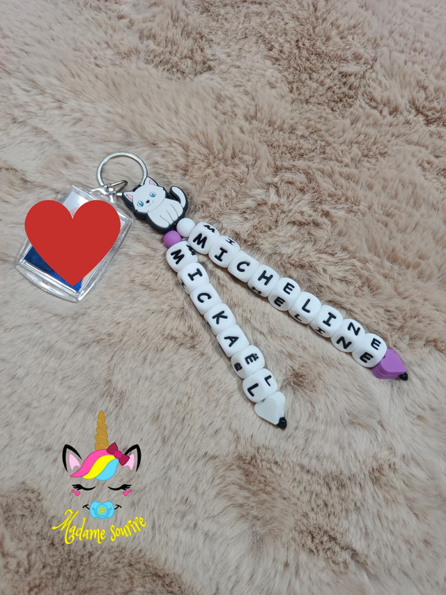 Porte clés photo 2 branches liées Chat
