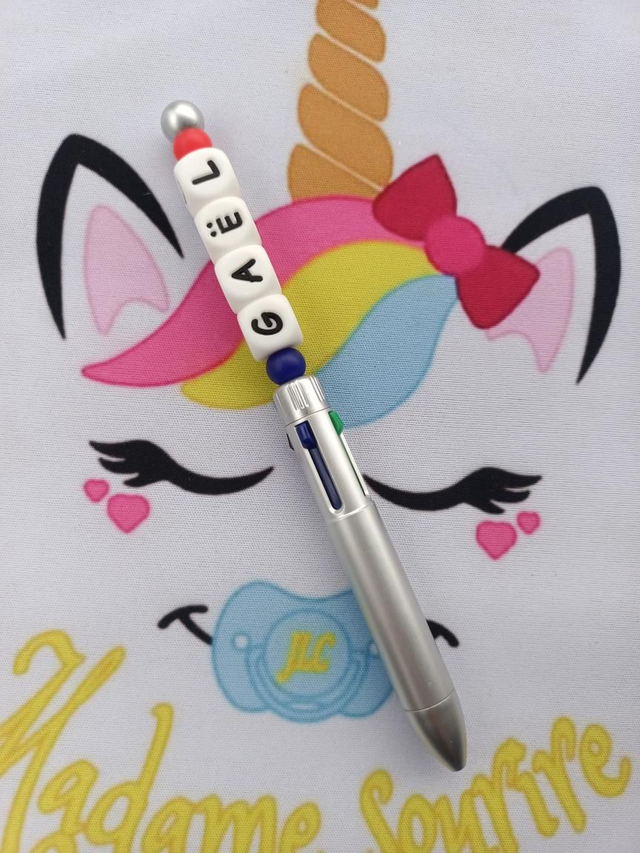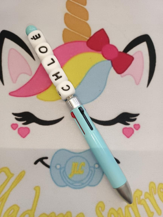 Stylo 4 couleurs 100% personnalisable en silicone alimentaire et/ou bois naturel, encre noir, bleu, rouge et vert.