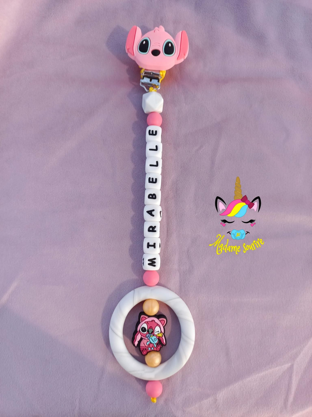 Une Suspension d'éveil pour que bébé s'occupe tout en s'amusant et même soulager ses poussées dentaires en le mâchouillant. Composée d'un clip pour accrocher au tissu sans l'abîmer, à l'extrémité, une perle entourée d'un anneau pour développer les sens de bébé.
