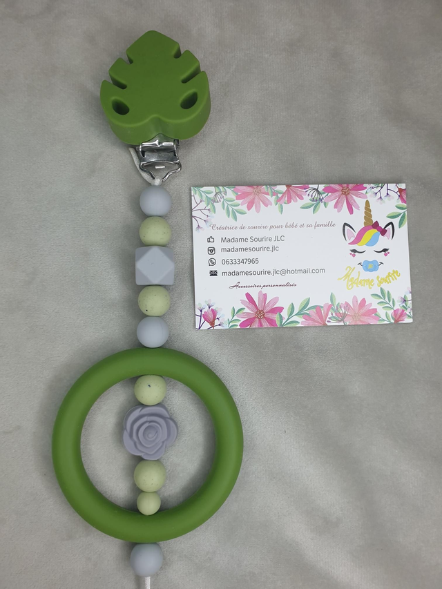 Respect des normes CE, composée de perles silicone alimentaire et/ou bois naturel.