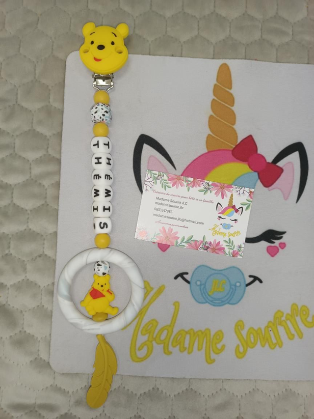 Respect des normes CE, composée de perles silicone alimentaire et/ou bois naturel.
